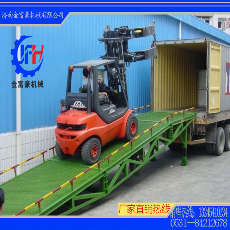 移動式液壓登車橋是與叉車配合使用的貨物裝卸輔助設(shè)備,可根據(jù)汽車車廂的高低調(diào)節(jié)高度,叉車可以直接通過本設(shè)備駛?cè)胲噹麅?nèi)部進行貨物的批量裝卸,僅需單人作業(yè),即可實現(xiàn)貨物的快速裝卸。它使企業(yè)減少大量勞力,提高工作效率,獲取更大經(jīng)濟效益。
